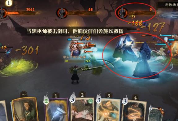 2、一个黑巫师倒地之后,另外两个黑巫师会迅速救起,建议将两个黑巫师一起击倒,用技能打断另外一个黑巫师,不让它救人!