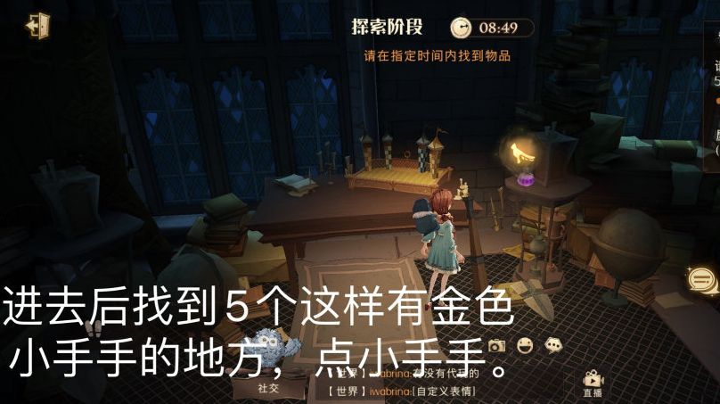 进入有求必应屋之后,在房间里要求寻找5个金色手标识的位置,找到之后,点击金色小手,找到五个之后即可开启宝箱领取奖励!