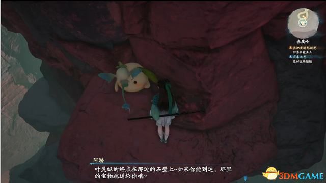 先绕着叶灵下方的岩石一直转到顶。