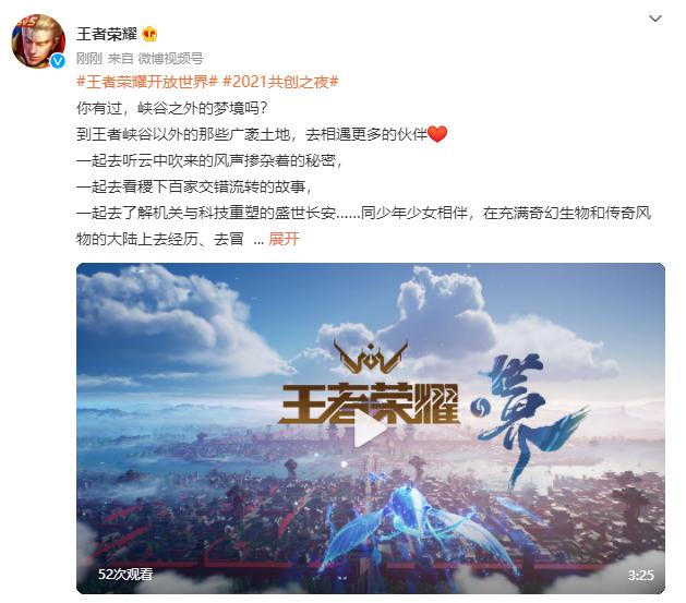 今日晚间,在《王者荣耀》2021 共创之夜活动上,腾讯正式发布了《王者荣耀》IP 新游《王者荣耀:世界》,并公开游戏实录画面!