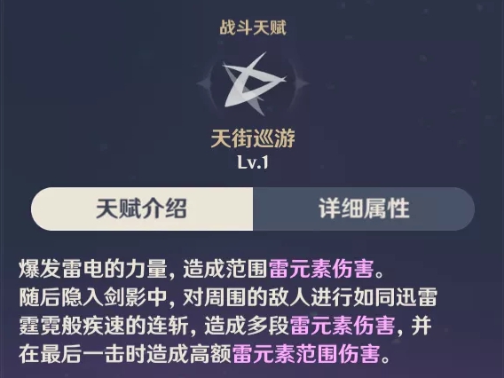 多段雷元素伤害,倍率一般,释放时为无敌状态,可用于躲技能和回复体力。配合被动天赋玉衡之贵可以让暴击率BUFF覆盖爆发期。
