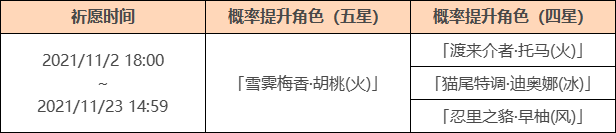 ●活动期间,限定五星角色「雪霁梅香·胡桃(火)」的祈愿获取概率将大幅提升!