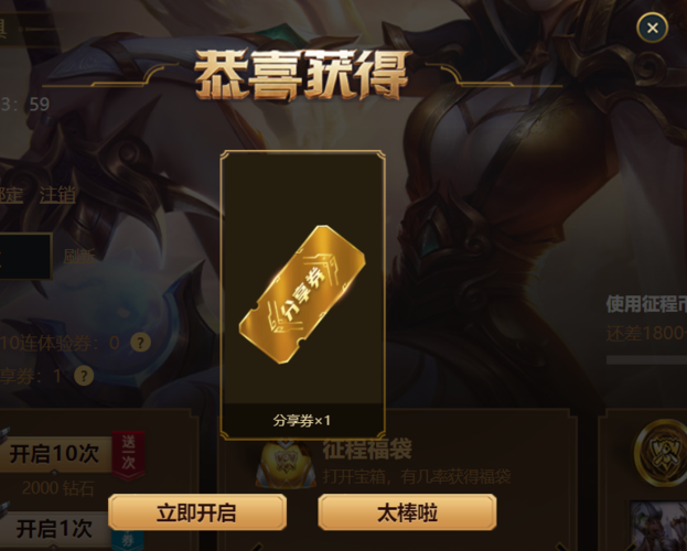 1、分享券是近期LOL网页抽奖活动中新加入的道具,玩家参与网页抽奖开启宝箱可以获得积分,累积达到200积分后就可以在下方领取一张分享券;
