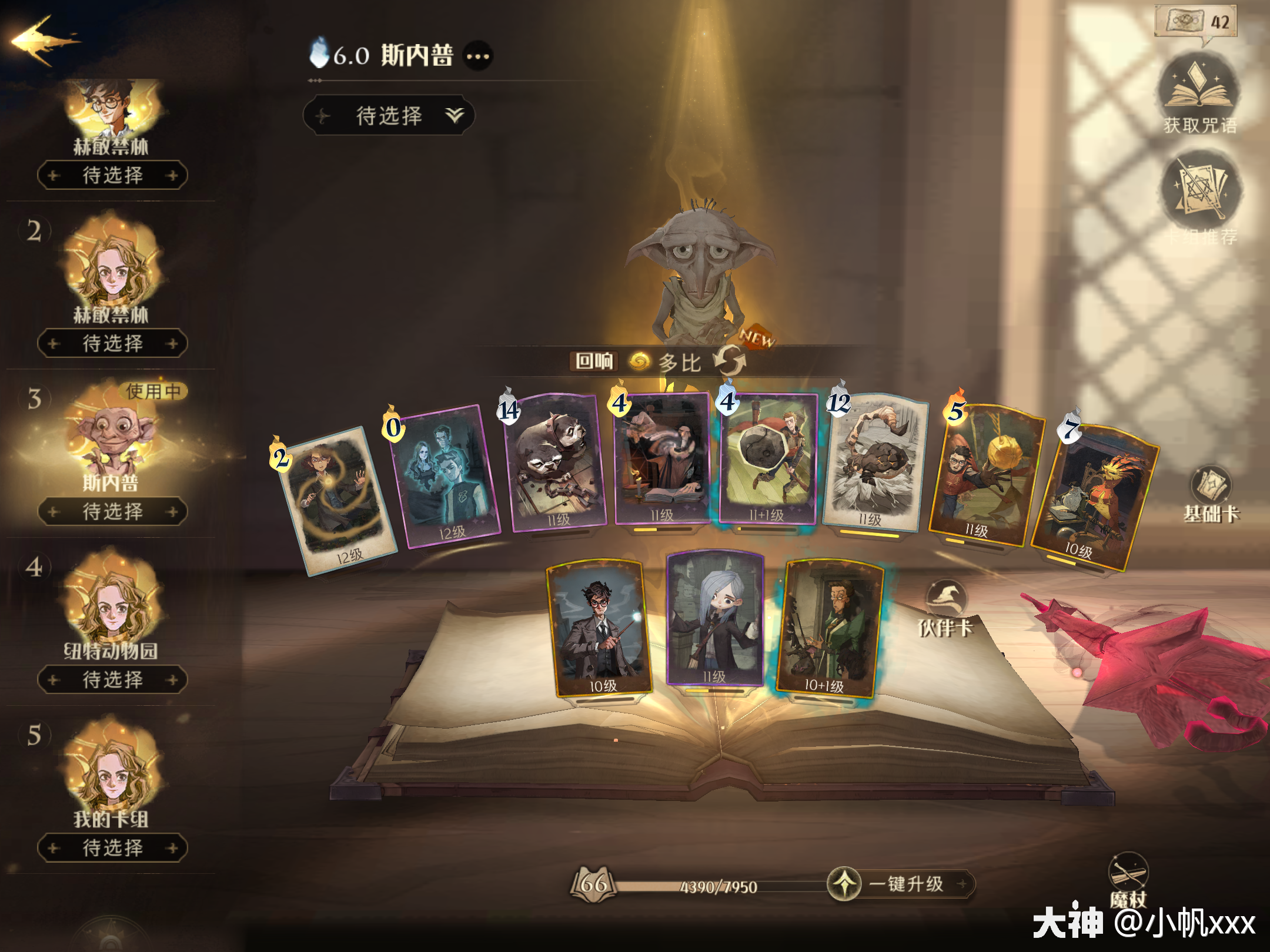 多比游走球卡组相信大家在新赛季碰到的不少了,在多比回响加强后,使用移形换影会在原本的位置留下一道残影,对命中的人造成百分之两百的攻击力的伤害,这次加强让多比一跃成为t0卡组,高机动性让多比的生存能力很强,配合残影与游走球的不断磨血,以及麦格的爆发,这里说一下我伙伴卡的选择,首先我把哈利前置是因为第一哈利放角落,可以吸收大量的游走球和赫敏闪电的伤害,游走球的优先目标不是玩家而是后排单位,并且可以有效的防御海格三书的进攻,艾薇上是目前我遇到过不少的历火卡组,而且游走球没有很好可以处理历火的手段,所以我加入了一张艾薇,麦格配合低配法术打爆发就不用说啦!