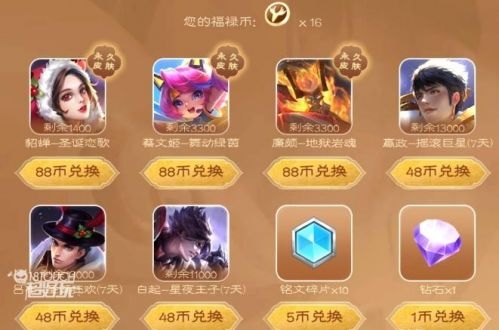 3.然后可以在奖池里面抽取貂蝉圣诞恋歌、蔡文姬舞动绿茵和廉颇地狱岩魂三款史诗级的皮肤;还可以兑换福禄币,来进行英雄碎片的兑换!