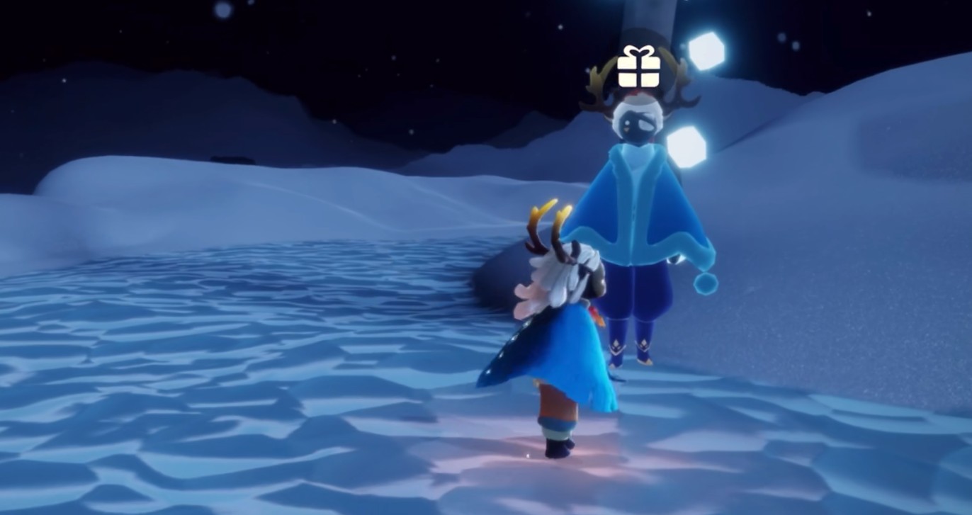 办公室顶楼天台滑冰场,我们找到雪人旁边的先祖,点击其头上的按钮,就可以解锁未拥有的2020年圣诞礼包了(鹿角头饰、雪花斗篷)。