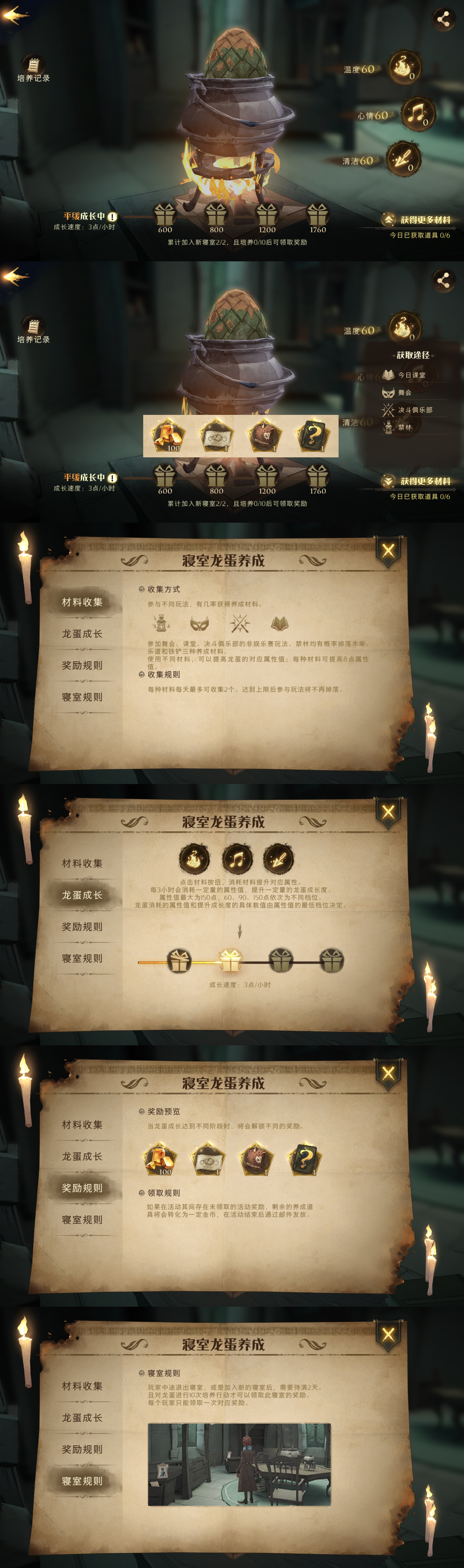 5.活动期间,当玩家加入新的宿舍后,需要呆满2天且对龙蛋进行10次培养行动才可以领取奖励。玩家中途退出宿舍后,龙蛋成长进度清空,但是自身的培养材料将会保留!