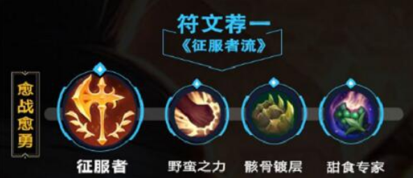 1、征服者流: 征服者、野蛮之力、骸骨镀层、甜食专家