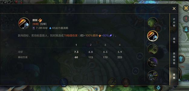 2:在对线的时候,一般不会先使用蓄力再使用跳斩,因为蓄力技能可以刷新普通攻击,还可以增加攻击距离。所以对线正常用平A蓄力或者是跳斩平A蓄力来进行消耗。对线时可以刻意在敌方兵多地方跟敌人打,直接开启反击风暴技能,吸引小兵仇恨之后,把伤害提高满,打完爆发晕住敌人就跑,等待下一次冷却cd。
