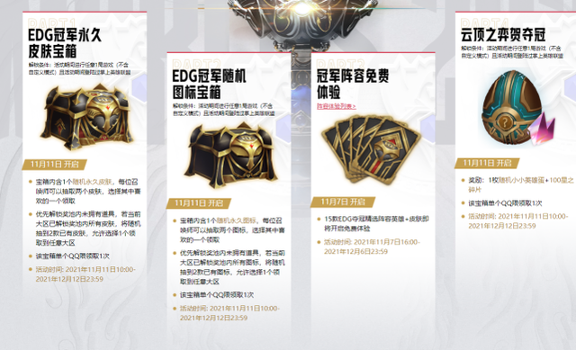 要说EDG夺冠的影响力,大家在这几天各种朋友圈和社交圈都能够感受到,整个电子竞技就像是过年了一般,毕竟EDG影响了很多LOL的玩家,而且是这么多年,如今他们蛰伏这么多年,在多次止步八强也陷入低谷之后,终于在今年上演了不破不立夺得冠军,所以是真正意义的“青春回来了”。然而EDG的夺冠,除了让我们可以再次购买一套属于LPL自己的冠军皮肤以外,同时英雄联盟官方也是特别放出了超级福利,而且是早早就安排上了,其中有免费永久皮肤,有全场皮肤半价,双倍经验等等等庆典活动,可谓是下血本!