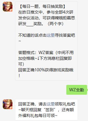 在昨日推文中,参与全部4次研发会议活动,可获得嫦娥拒霜思研发____奖励?