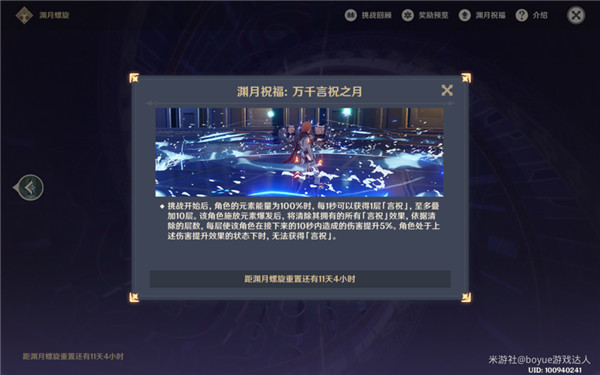 简介:首先简单说下这期的渊月祝福,在满能量后如果憋10秒再放大招,会在接下来的10秒内增加50%伤害,这个运用好的话增伤效果是相当棒的,充电宝雷神依然是深渊宠儿。