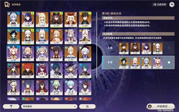 然后11层的地脉异常与上期一样,对水火属性攻击增伤60%,意味着上半场带一名火c与下半场带一名水c,都是最佳方案。