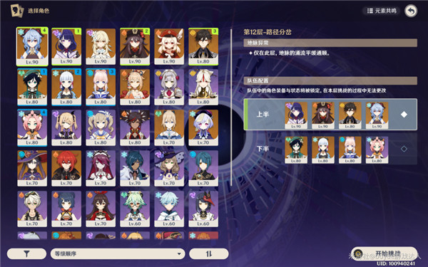 下半场永冻队最佳,因为会遇到纯水类怪物,这边不一定要温迪,只要能达到永冻即可。另外由于第2间有冰属性怪物,可以带个火c。