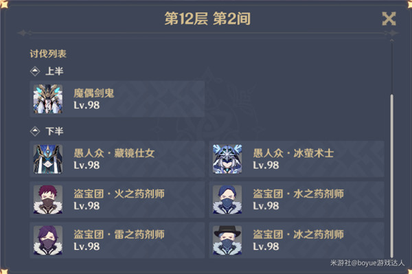第2间:上半场6只,下半场4只。基本难度都不大,唯独冰萤术士需要尽快破盾,有钟离的话可以使用石化。