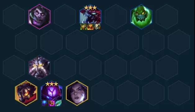 2.五变异体系,优势在于变异羁绊如果随到了斩杀或者减蓝,就能弥补没有黑魔法师羁绊的伤害,在前期和后期的强度都会非常高,不需要太久的发育,并且维克托还有卡莎的加入能够培养双C,前排多追1张3费卡大虫子,给到肉装也能为团队弥补不少输出,坦度也较为稳定,开局大家可先拿卡萨丁看看变异自行参考玩什么体系。