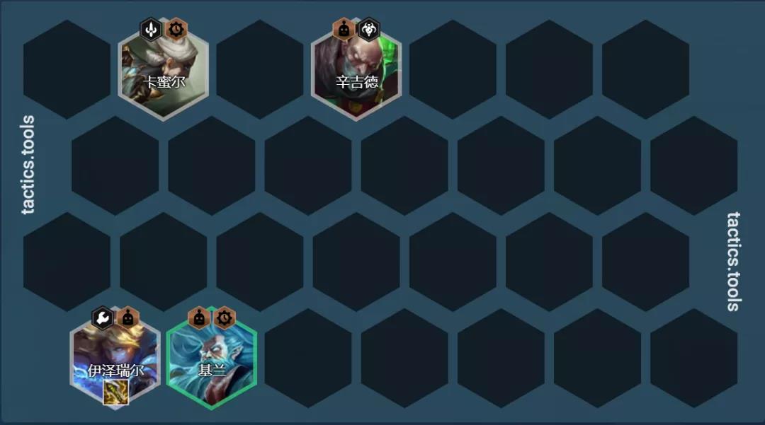 阵容必须要有一个3星低费卡的前排,这套阵容里面因为只有帝国和挑战者羁绊,没有传统的保镖、格斗家英雄,那么也只能从这些低费卡里面做出选择。
