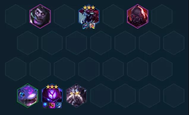 蚂蚱和虫子不3不上8,在虫子没有圣盾转的情况下8人口上塞恩的提升不大,有帝国转可以考虑追3星乌鸦,8人口不要塞恩补男刀开3帝国,中期一旦有了3星蚂蚱能够疯狂连胜,站在原地就能烫死对面C位,总的来说是一套吃分容易,吃鸡比较看质量和海克斯的阵容。