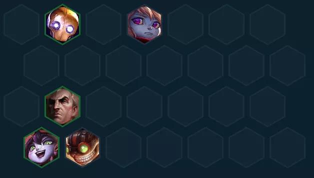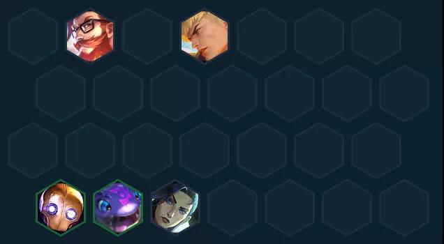 备选过渡推荐:炸弹人+波比+机器人+璐璐+乌鸦组成3约德尔2黑魔2保镖2极客,蓝buff法师都可以先带,这套过渡的优点是如果约德尔人出薇古丝比较早的话,可以玩到底转六法先知。