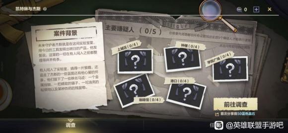 消耗调查点,可调查咖啡馆、皮尔特沃夫上城区、钟楼、港口、学院广场五个地区的可疑线索,收集证据,这些证据将指向嫌疑人。当收集全部线索后,即可进行逮捕,将真凶抓捕归案!