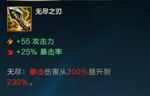 可以看到凯特琳的被动精准狙击造成的额外伤害加成是非常契合的,而且凯特琳的w技能和e技能可以强化普攻直接打出凯特琳的被动造成额外的暴击伤害,无尽之刃这件装备肯定是凯特琳的首选。