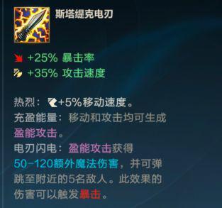 凯特琳本就是一个非常依靠普攻打伤害的英雄,电刃的被动带来收益也是非常不错的,配合无尽之刃的被动打出高额弹射魔法伤害,因为电刃的魔法伤害可以暴击,所以优先还是得做出无尽之刃。