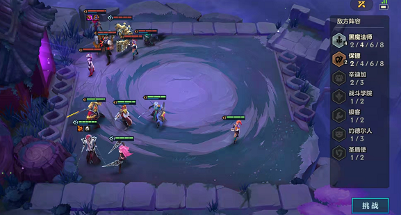 1、对面羁绊为4黑魔法师、2保镖,我方羁绊为6战斗学院和和2刺客(可以合成一个刺客转职)