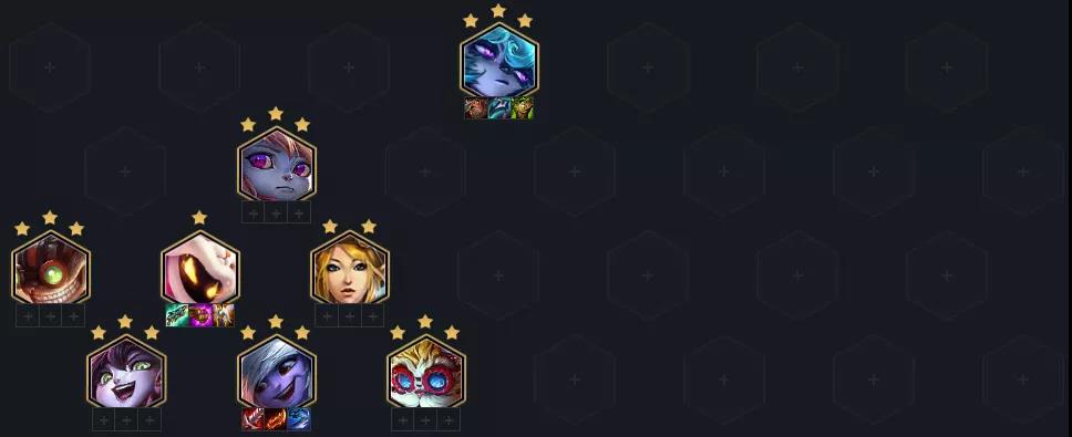 维迦作为阵容的绝对核心,是要在所有的约德尔人的卡到达3星以后才能召唤出来,所以早期一定要给维迦预留核心装备。吸血枪可以增加维迦的续航、回复能力,法爆拳可以增加维迦的爆发效果。最后一件装备考虑出春哥,作为约德尔人的大哥牌,出个春哥可以增加维迦的容错率。