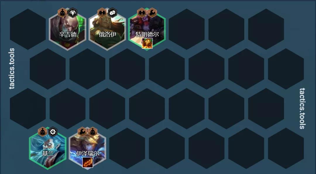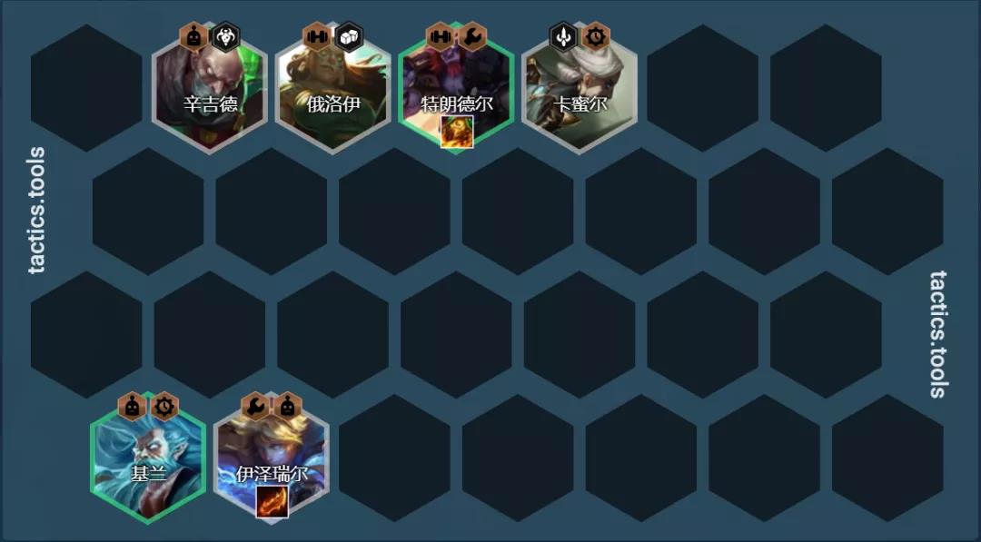 5人口补充俄洛伊凑出2格斗家羁绊支撑前排的坦度即可,当然如果有2星青钢影也直接补充2精密战士。前期锁子甲和腰带可以给巨魔打工,日炎是前期非常重要的连胜工具。而且需要注意的是3发明家的虫子需要防一手虫子。