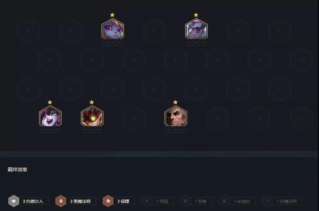 2-1升级4人口,2-5升级5人口,打工阵容看来牌选择,摩昂比较喜欢3约德尔+2黑法师过渡。前期炸弹人输出强度较高,关键是3约德尔前中期稳定获得金币收益。打工阵容并非一种,主要看来牌选择,如果有极客发明家,斗士/格斗女枪都可过渡。装备上就是优先考虑冰女的装备,阵容不建议强玩卖血,中期不胡容易提前出局。