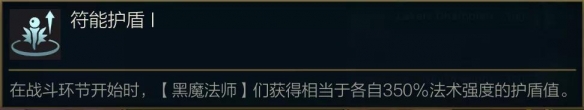 这套阵容对于海克斯强化的要求还是非常高的。最佳的选择搭配就是符能护盾。效果果能够提升自身的300%/450%/600%法术强度的护盾值。这是对于黑魔法师最大的提升,能够让所有黑魔法师有足够的护盾加成和容错率。特别是黑魔乌鸦,这是护盾的主要来源。