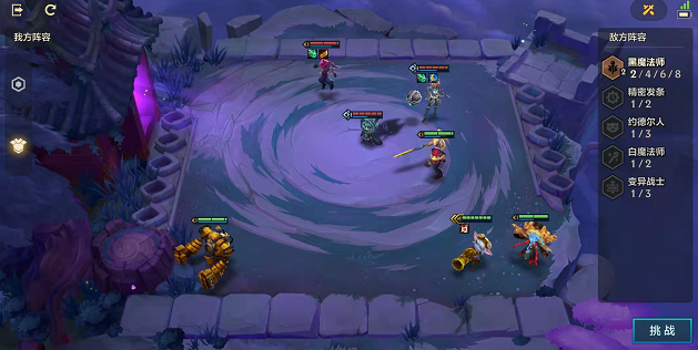 合成基克的先驱给小炮,机器人拉到左下角,盖伦拉到最前面去顶,小炮和时光老头放在右下角即可,主要靠小炮来打输出,时光老头保护他。