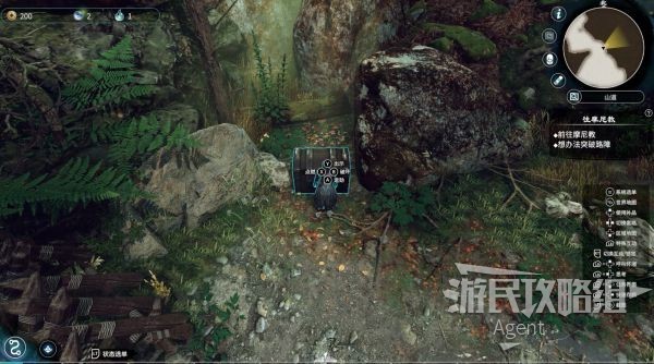 往前走遇到个大箱子,用鼠标右键/手柄LB可显示行动菜单,选择点燃、出示、运劲、破坏四种行动。这项操作非常有用,后面常会用到。