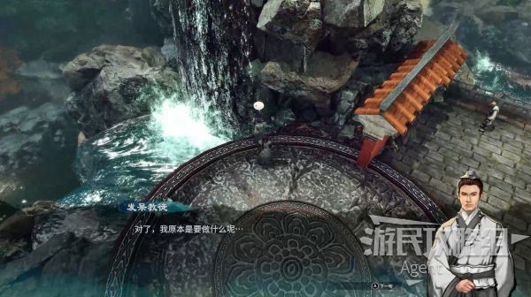 还是神像西侧,瀑布旁的人在发呆,忘了自己要做什么,先不管等下再说。