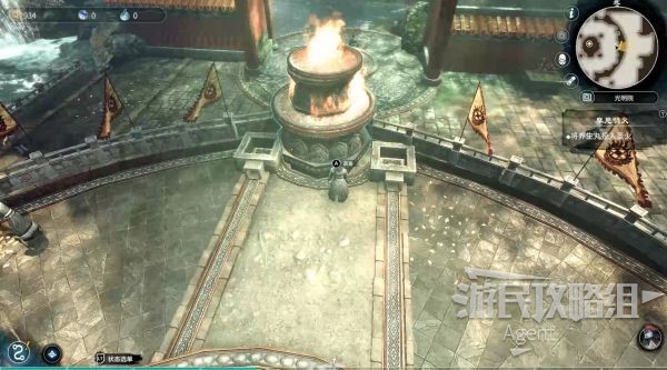 触发神像旁的圣火,然后进入正殿找教主。