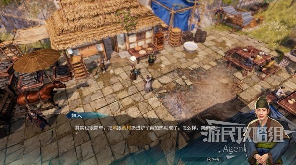 杂货店商人旁的妇人,教你鸡汤的做法。杂货店可买到切草、七彩的色纸、老旧的纸张、土鸡,后面再说用法。
