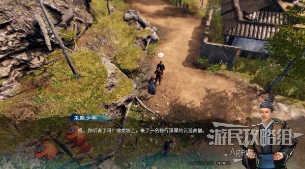 店小二附近两人在谈论,锦龙坡上有高僧。