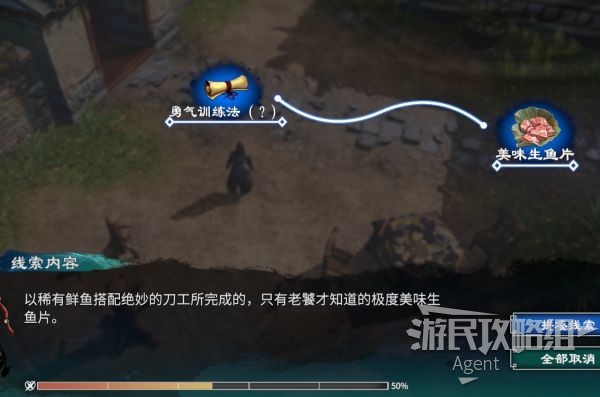 拼凑线索,然后把生鱼片交给小文,得到盐水鸡。