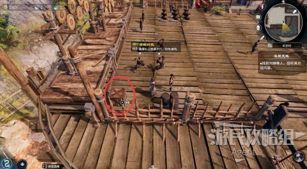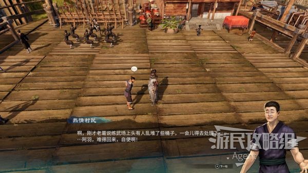 练武场中间走动的村民说,练武场上方有堆空桶子很可疑,其实这是刘婶那个支线有关的,到时自然就解决了。