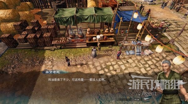 杂货老赵这里有情报,在他这里可买鸡蛋、鸡油、猫食小鱼、粗米。后面解谜需要时,记得来买。