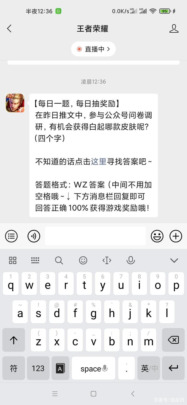 在昨日的推文中,参与公众号问卷调研,有机会获得白起哪款皮肤呢(四个字)?这是王者荣耀游戏2021年12月5日微信全新的每日一题!不知道诸位亲爱的农药玩家有没有及时的参与今天的答题活动呢!