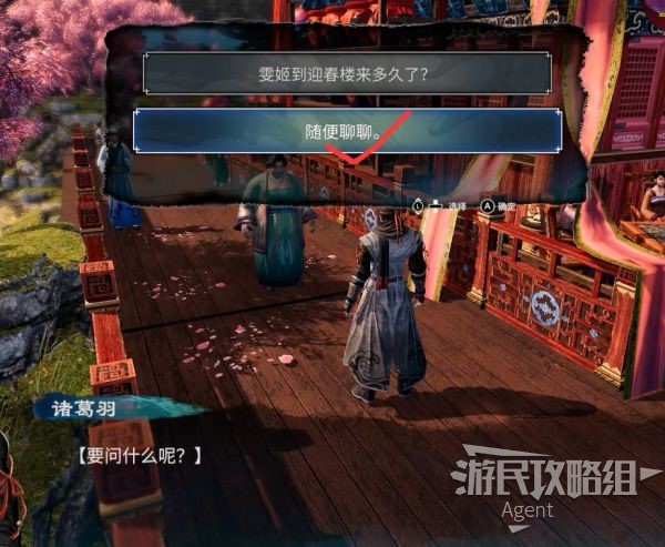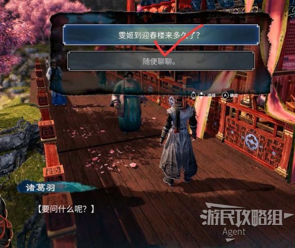 离开迎春楼,走到桥头就会自动回来。(还是忘不了雯姬姑娘啊,我诸葛羽明明是对谜题感兴趣好吧)