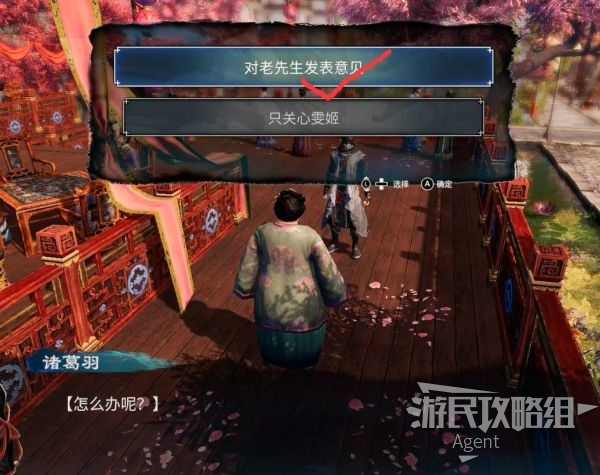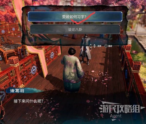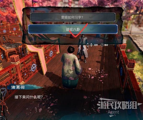回到迎春楼,终于在亭子见到雯姬啦!原来雯姬的师父就是蔡襄。