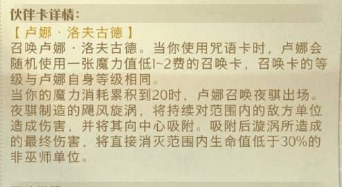 1. 卢娜在场时,每使用一张咒语卡,卢娜会随机使用一张比咒语卡低1~2费的召唤卡;