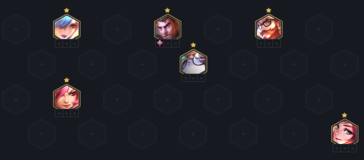 蕾欧娜、卡特琳娜、猫咪、杰斯、格雷福斯(男枪)、拉克丝,剩下的3人口可以5费英雄任选,或者搭配布隆凑2保镖。