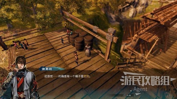 芸妹会给你萤石,到练武场上方空地,站在木桶旁使用萤石。