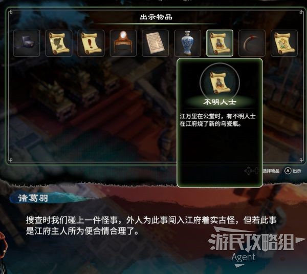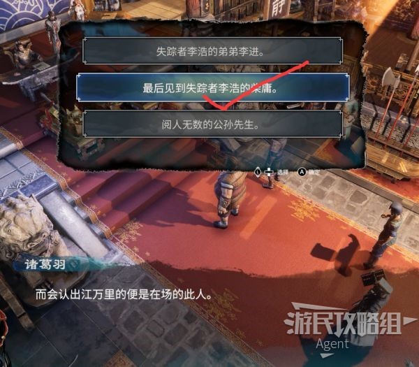 临走前,公孙策说女儿拿了不该拿的东西,点取消,然后问公孙妤,得到介绍信。后面到杭州驿站附近交给可疑男子解锁蓝色武器商店。