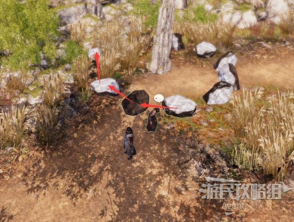 按照老婆婆的提示,从正北的石头开始数,按子丑寅卯的顺序找到卯岩(第四个石头),敲这第四个石头,江万里就出来了。