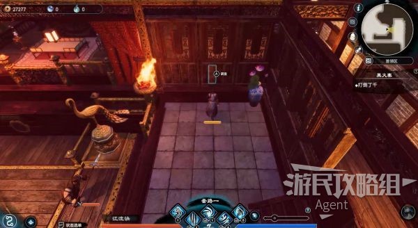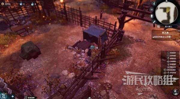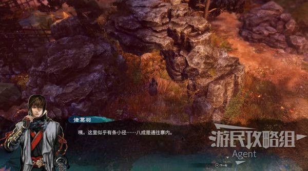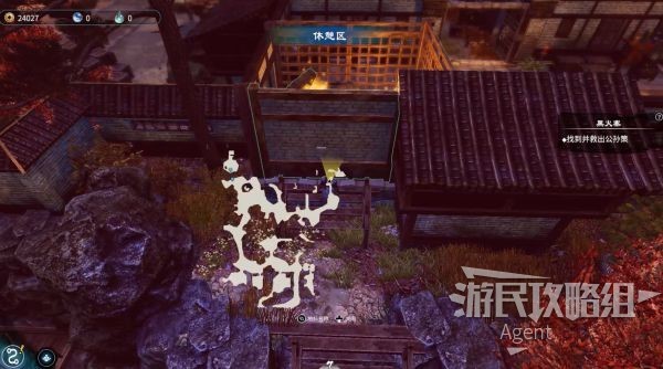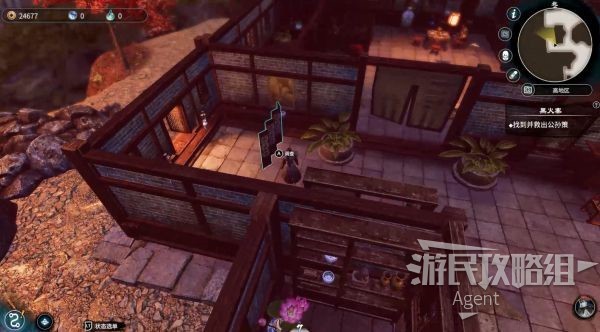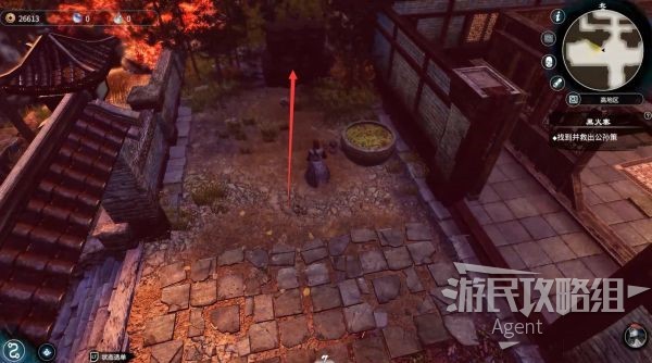 进入黑火寨,右边门口有两个守卫,左边可发现暗道。