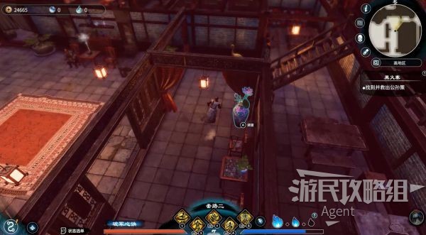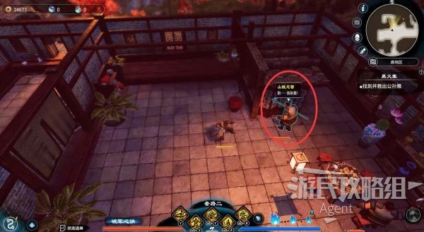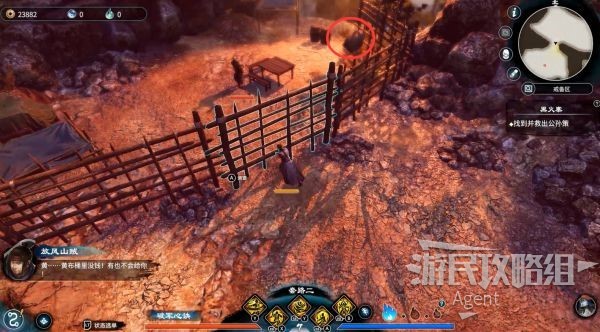 先探索地图东面,休憩区消灭山贼,得到吴总管的情报。